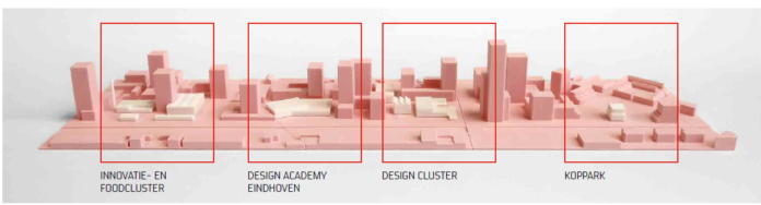 The new district, situated between Kanaaldijk-Zuid and De Caai, will feature several residential towers reaching up to 75 metres, with one landmark building planned at 105 metres. The design emphasises a healthy public space with inviting streets, alleys, and green courtyards. Alongside housing, the area will host creative and innovative amenities, including the future home of the Design Academy Eindhoven.
